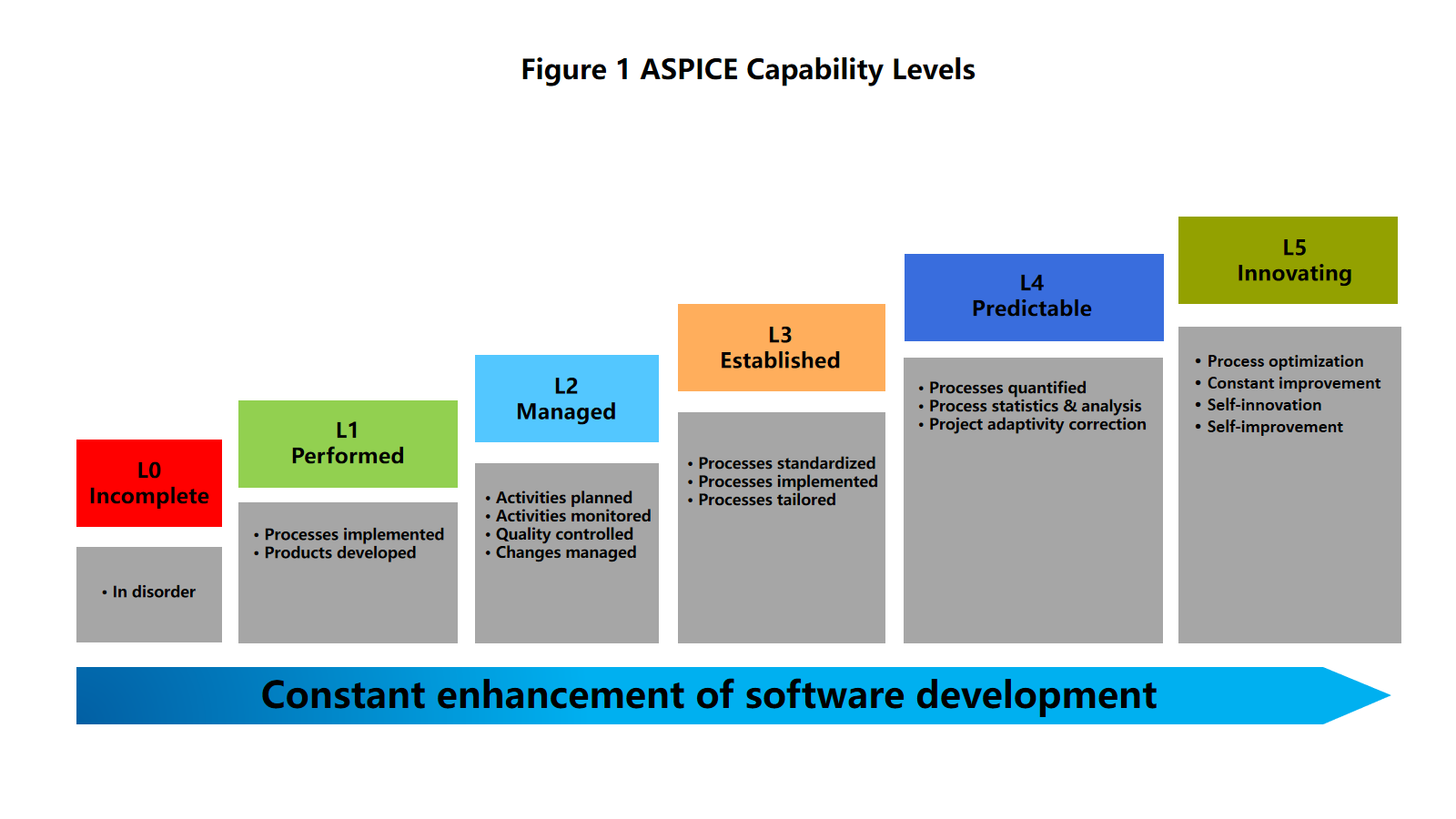 Originating from Europe, Automotive Software Process Improvement Capability Determination (ASPICE) is a model generally used by producers of auto parts to improve ECU, reduce software problems and enhance customer experiences. Since 2005, it has been advocated and adopted by more and more vehicle manufactures and producers of auto parts as the admittance standard to evaluate software suppliers.
