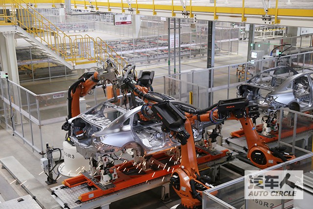焊裝車間,175臺(tái)德國KUKA機(jī)器人集體操作,在線激光測量設(shè)備ACS、機(jī)器人抓件視覺引導(dǎo)系統(tǒng)更提升了焊接的精準(zhǔn)度。涂裝車間和總裝車間均采用越級(jí)的標(biāo)準(zhǔn),不論是供應(yīng)商還是設(shè)備,抑或是技術(shù)標(biāo)準(zhǔn)幾乎與北京奔馳一致。