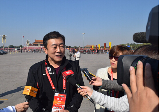 十月中旬的天安門廣場依舊熱鬧非凡,其中既有國慶余韻的影響,也有“2014環北京職業公路自行車賽”第五賽段在此鳴槍發車的原因。